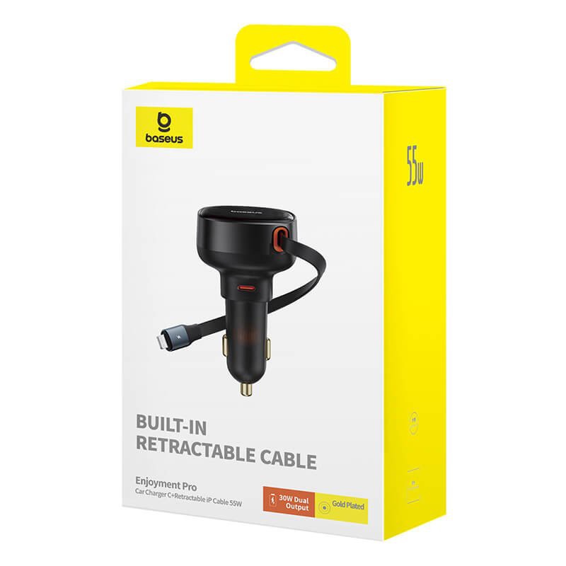 BASEUS ENJOYMENT PRO CAR CHARGER C+RETRACTABLE IP CABLE 55W C00057803111-00 BLACK