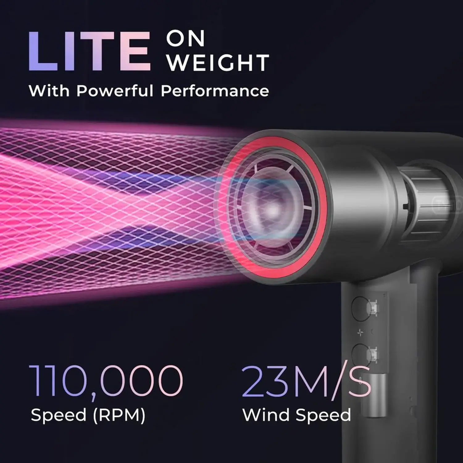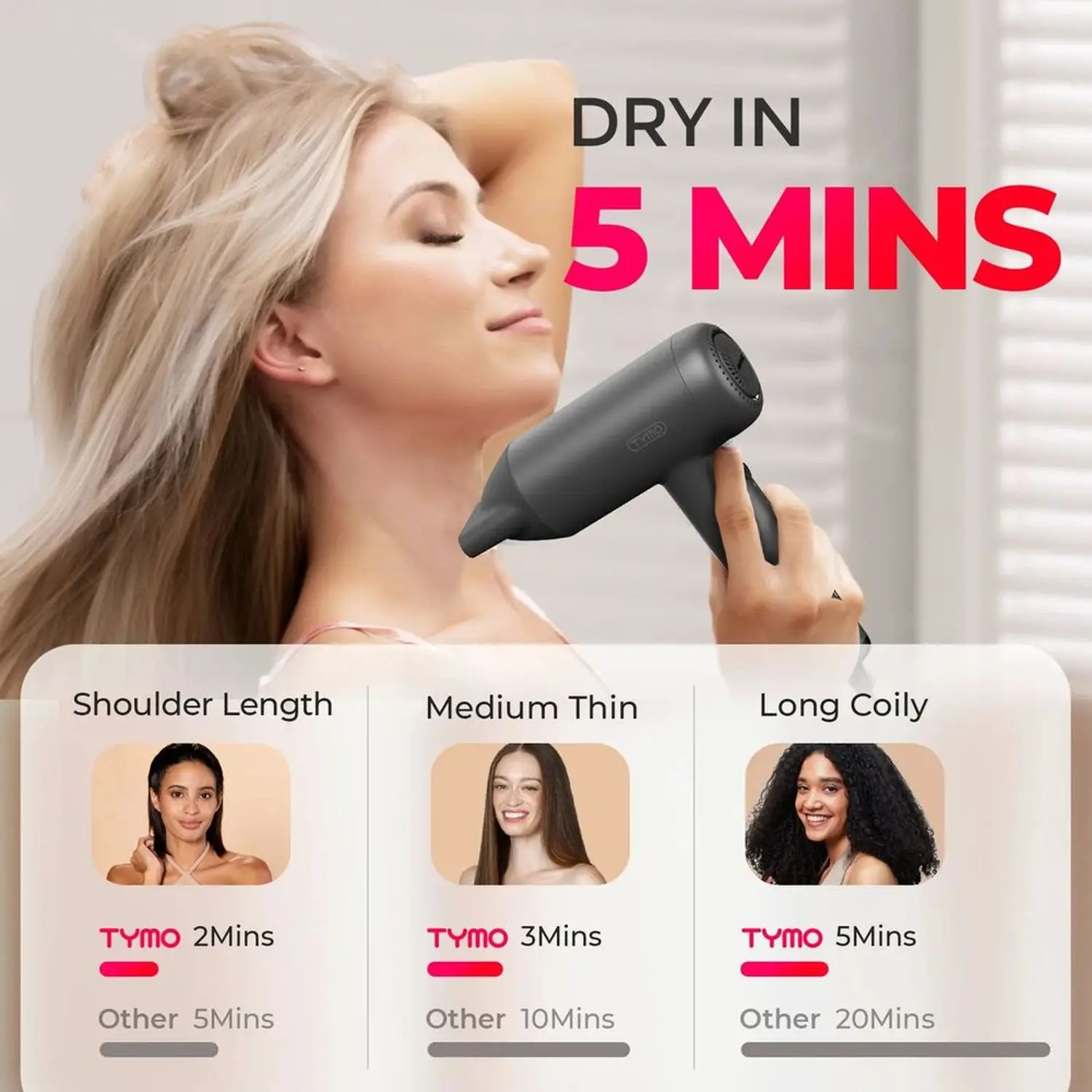- Lighting-Fast Drying- Whether it’s your morning rush or a post-workout refresh, TYMO hair dryer transforms wet hair in minutes. Thanks to the powerful 110,000 RPM brushless motor and 20L/s airflow, the high speed hair dryer is your ticket to instant