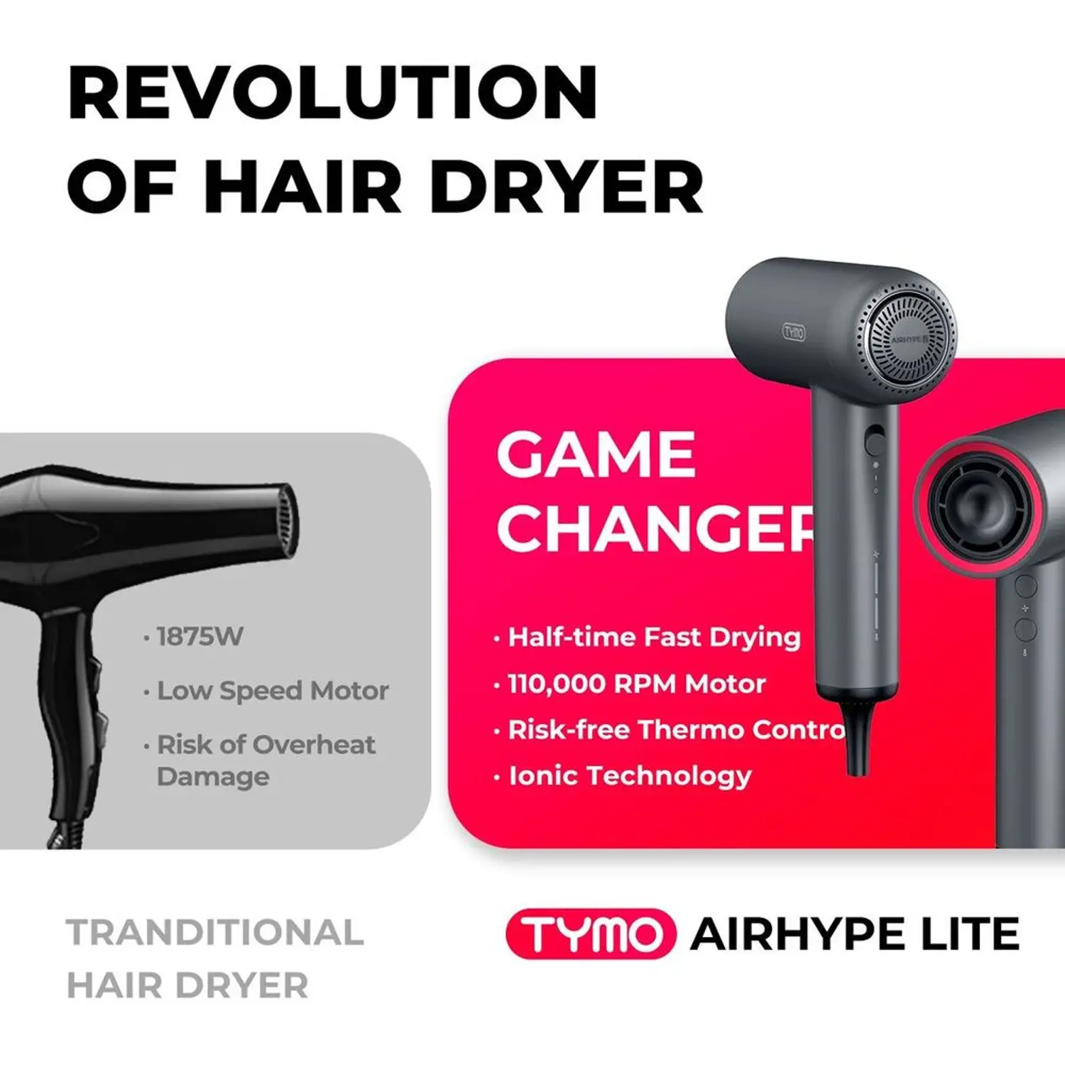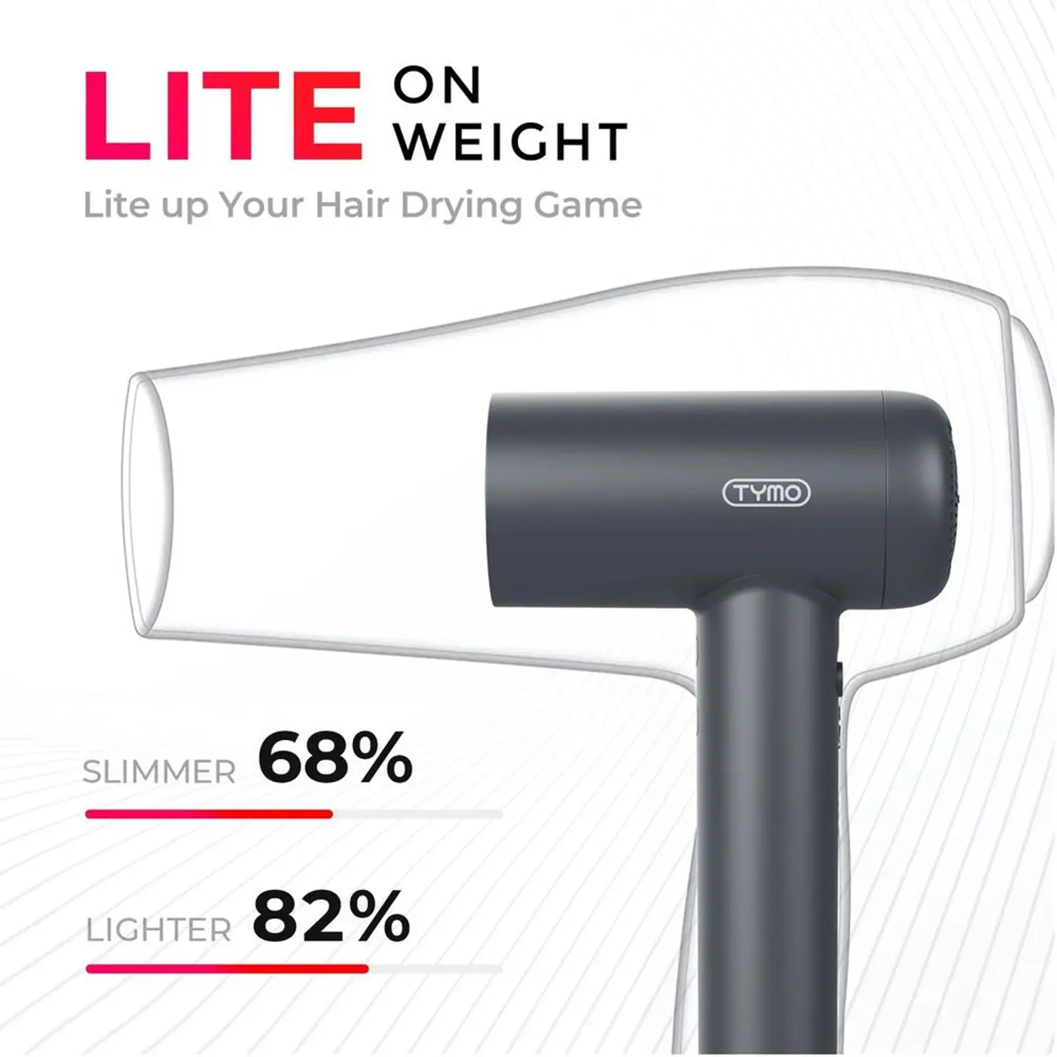 - Compact And Portable- 60% slimmer than a regular blow dryer, TYMO Airhype Compact is designed to be your travel-friendly companion. Weighing just 380 grams, it effortlessly fits into your on-the-go lifestyle