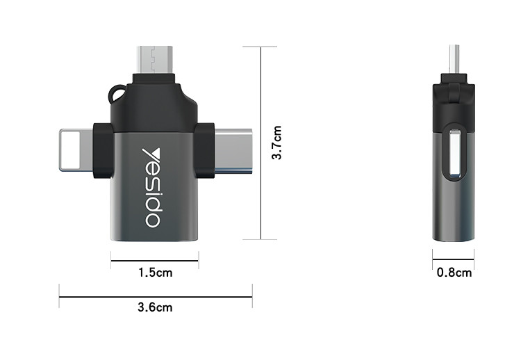 GS15 3 IN 1 USB To Type-C Micro Lightning OTG Adapter
