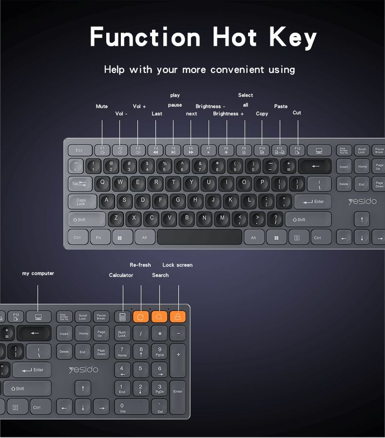 YESIDO WIRELESS COMBINATION KEYBOARD KB19